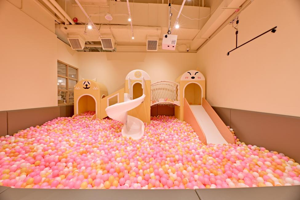 馬卡龍色波波池: 柔和色系的波波池,搭配牆上的攀爬設施與互動裝置,放電之餘拍照也非常美。