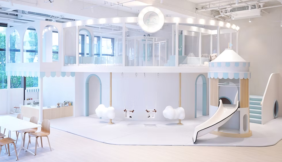 與一般色彩繽紛的 Playhouse 不同,這裡的遊樂區採用淺木色與粉嫩色調,視覺非常療癒: