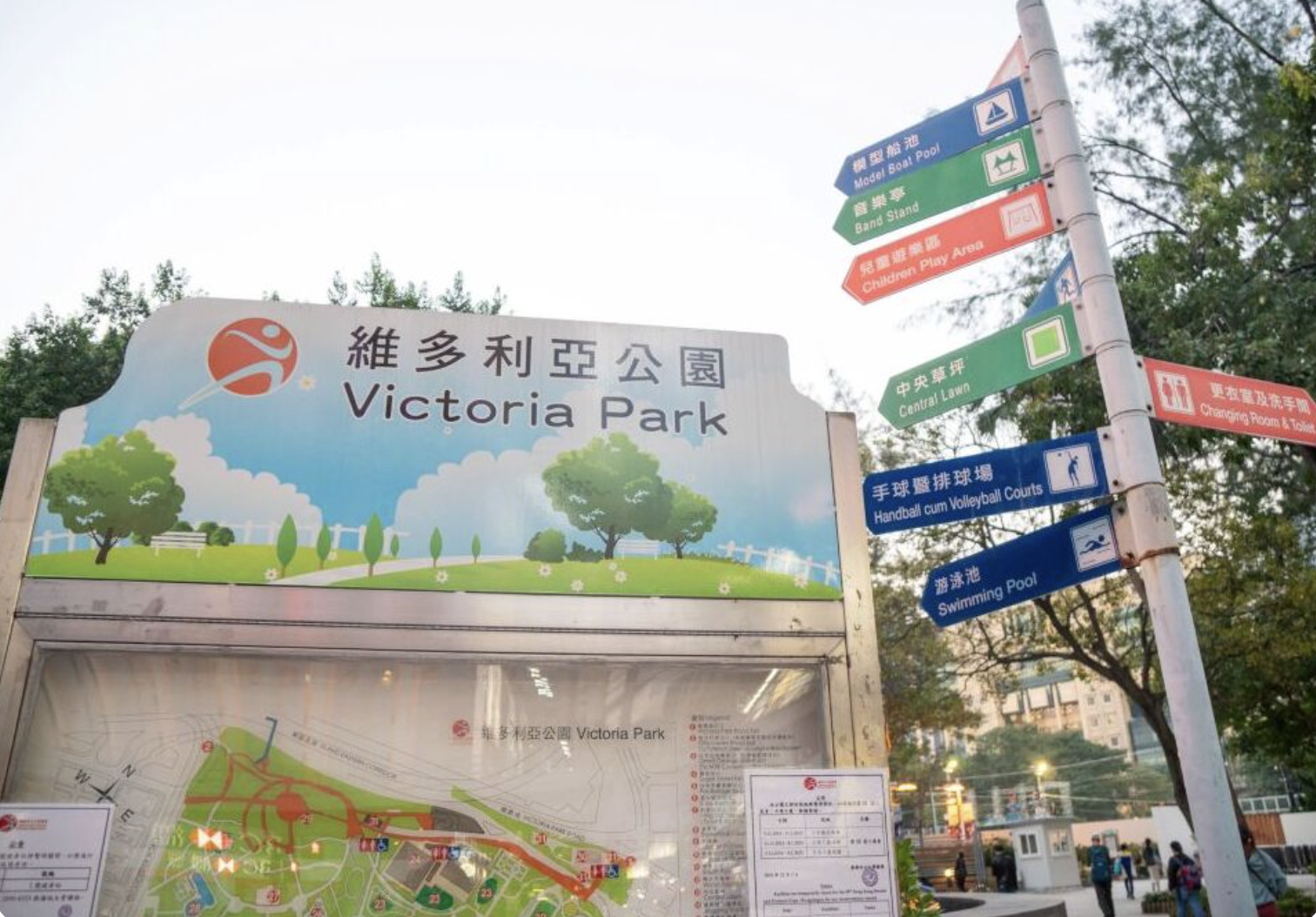 銅鑼灣維多利亞公園交通極方便,園內有多個兒童遊樂場,適合不同年齡層使用。遊樂場設施包括傳統滑梯、盪鞦韆、彈簧椅及攀爬架等,旁邊又有大草坪及行人徑,小朋友可在遊樂場跑跳後,轉戰草地踢波、放風箏。家長亦可以在樹蔭位置鋪墊野餐墊,輕鬆看實小朋友活動情況。
