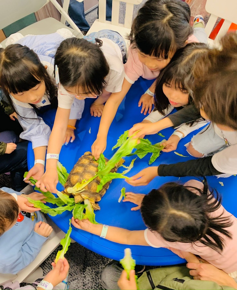 體驗由一個個整潔的專用膠箱拉開序幕。專業工作人員會逐一介紹今天的主角,最先引發全場尖叫的往往是__人__氣王陸龜。不同於書本上的靜止畫面,小朋友可以親眼看見牠靈活地撐起厚重的殼四處探索。